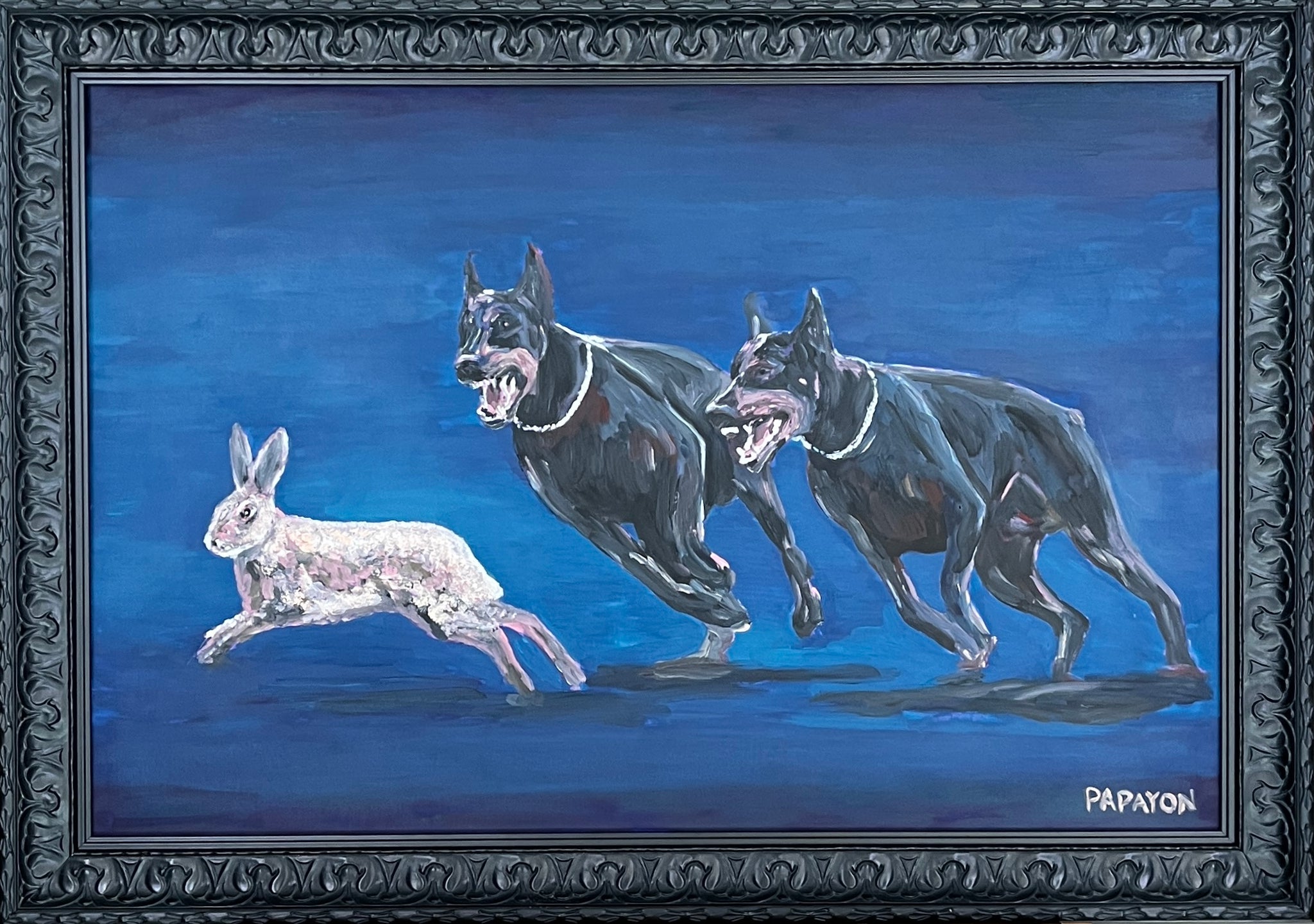 Original artwork by Papayon. Resilience and spiritual themes. Oil on canvas board, 24x36in. 39x41.2x1.5in framed. Worldwide shipping and a certificate of authenticity.