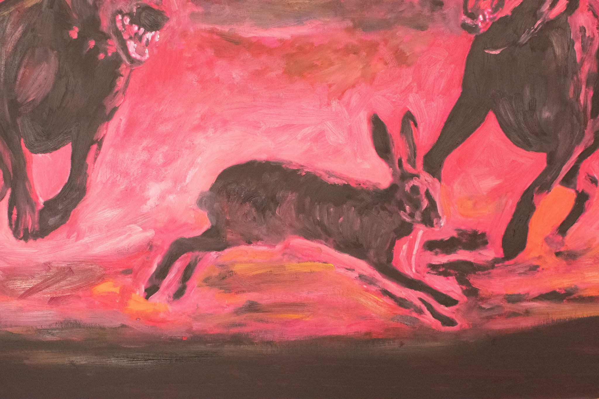 This work opens a trilogy shaped by the language of requiems. In Dies Irae, the chase is not accidental; it is appointed. The hounds advance with certainty, the prey already aware that the verdict has been spoken. What follows is not escape, but sequence.