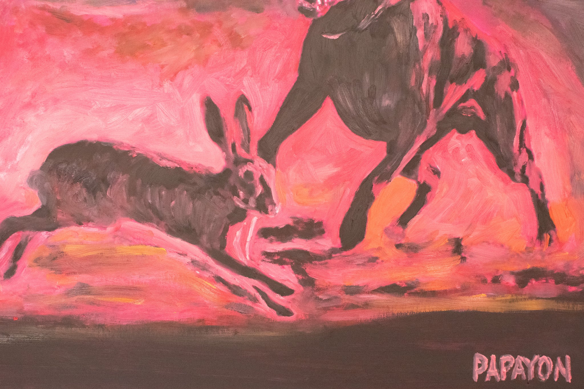 Original artwork by Papayon. Resilience and spiritual themes. Oil on canvas board, 24x36in. 33x45x4in framed. Worldwide shipping and a certificate of authenticity.
